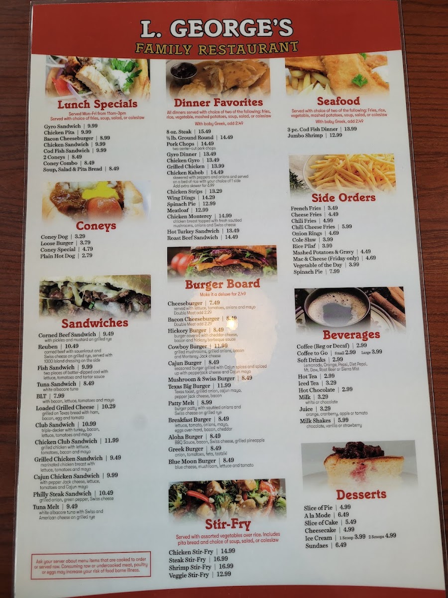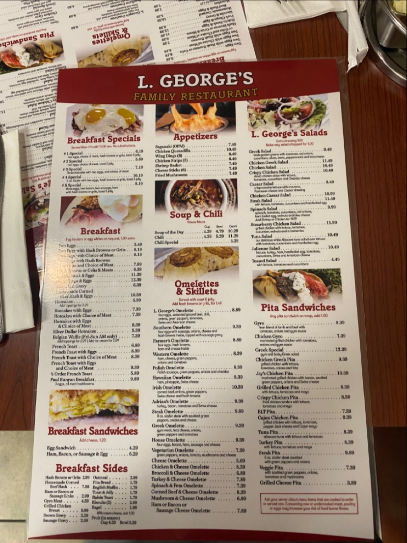 At L George's Menu, you'll discover a mouthwatering mix of flavors that reflect the heart of Walled Lake, MI. Located at 1203 S Commerce Rd, this cozy spot offers a wide variety of dishes that cater to every craving. Whether you’re in the mood for a hearty breakfast, a light lunch, or a fulfilling dinner, there's something on the menu for everyone.